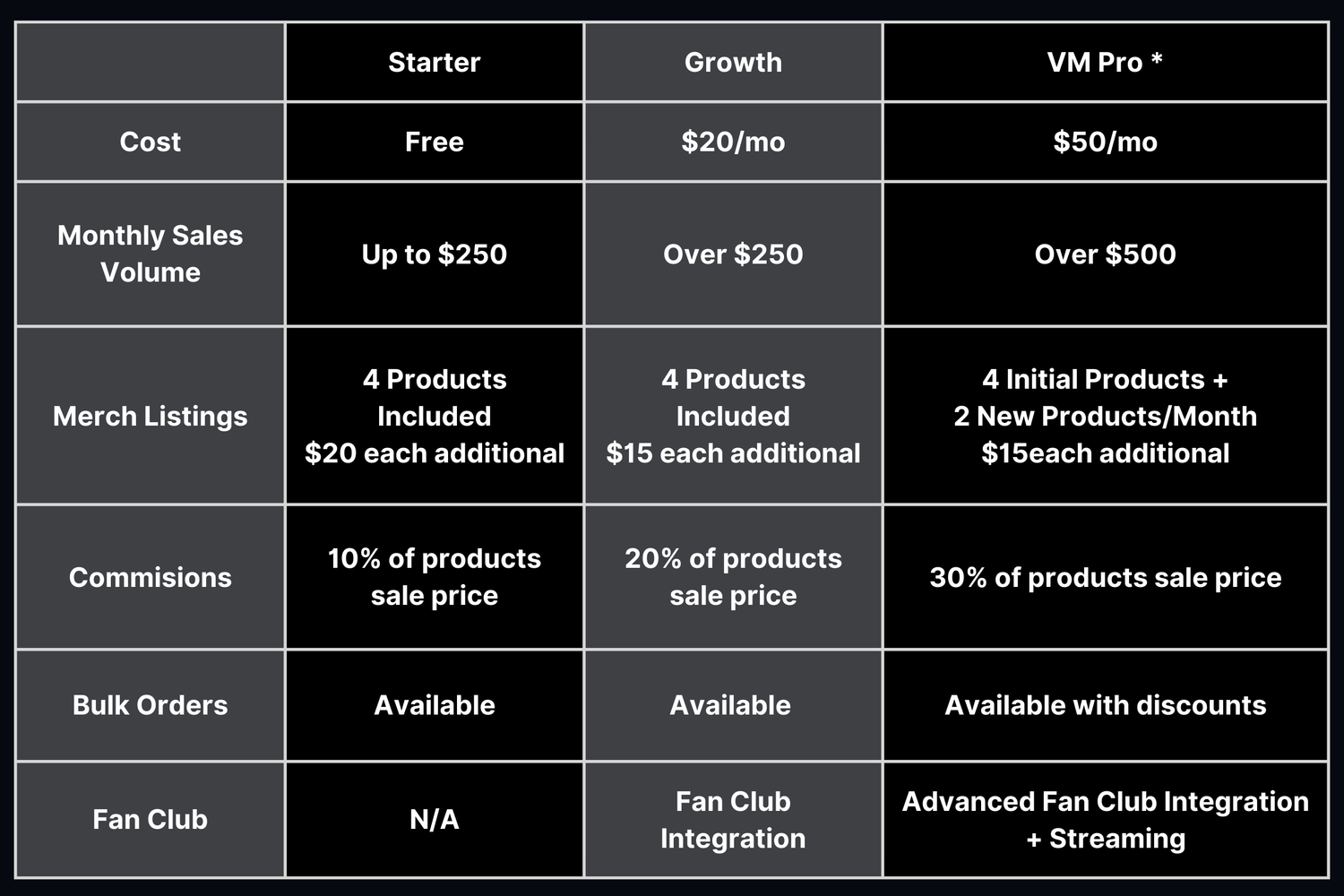 - At VertMerch, we’re committed to your success. As a partner, you’ll receive exclusive access to resources like promotional tools, marketing support, and analytics. Our team is here to help you optimize your sales strategies and make the most of your merchandise offerings. We’re dedicated to providing a supportive community where artists can thrive and grow.